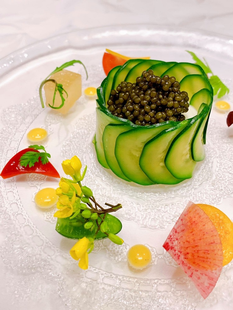 キャビア、トリュフ、牛ヒレ肉、鴨肉、伊勢エビ、フォアグラなど、