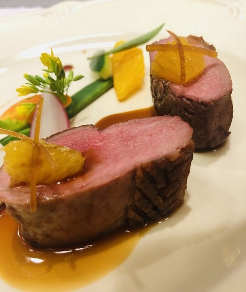 ルビー色に輝くソースは赤ワインとの相性もバッチリ。